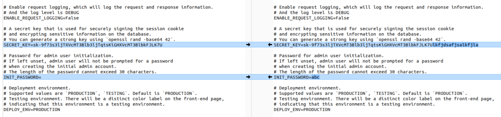 SECRET_KEYとINIT_PASSWORDを書き換えます。こちらの値は絶対に人に知られないよう保管してください。