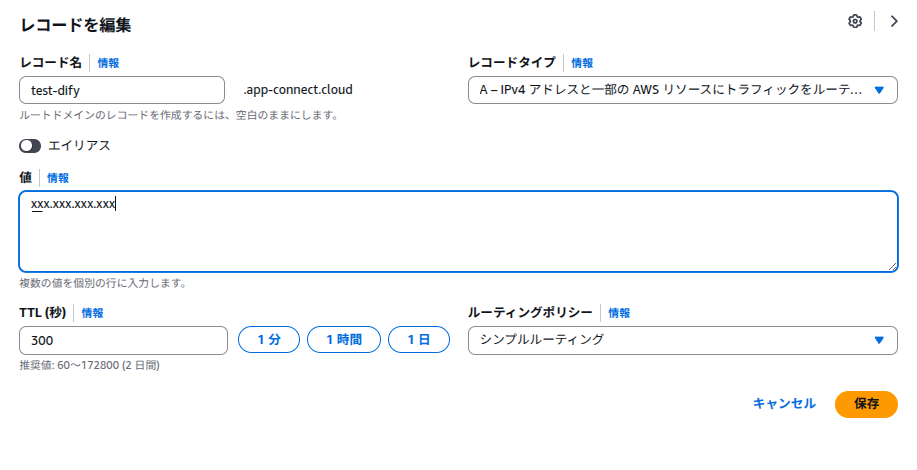 こちらは著者の利用するAWSのDNSレコード設定画面ですが、AWSは少し複雑なので、日本のドメインサービスをおすすめします。